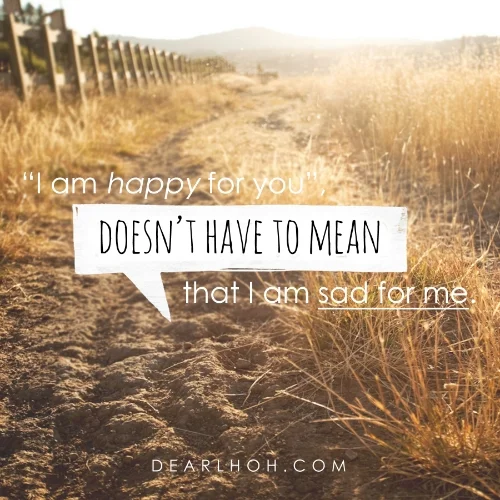 I understand what it is like to have to say “I’m happy for you” through the grinding of your teeth and the biting of your lip. It is hard, and sometimes not even truthful. But at the end of the day if I can bring myself to say that I am happy for them and truly mean it, you better believe that I am not saying that I am sad for me. The two are not related.