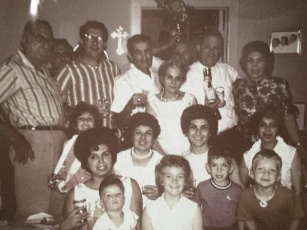 This is my grandmother's family. My father is the second from the right on the bottom row, and right above him (and a little left) is my grandmother with her siblings and parents (a little above and to the left of her).