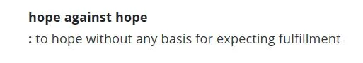 Hope is a funny thing. The definition found in the Merriam-Webster Dictionary is “to desire with expectation of obtainment or fulfillment, to expect with confidence: trust.” And then there is this funny notation at the end of it that says…