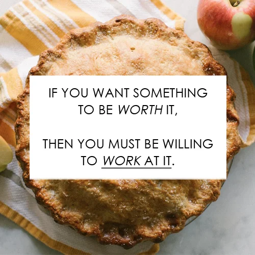 I have heard a thousand times that if you have to work so hard at something then it isn’t worth it. I used to believe it. I used to guide my relationships by it. And then after a lot of years of disappointments and loneliness, I realized something of the utmost importance… friendships are like a good APPLE PIE, not a good apple.