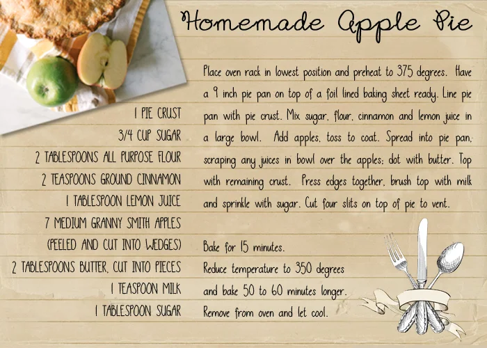 All great apple pies start with a great apple - or 7- so get a few together (apples and friends) and try out one of our favorite homemade apple pies. The secret lies in a great pastry crust, so ask your grandma for her favorite recipe and enjoy a slice of friendship together!