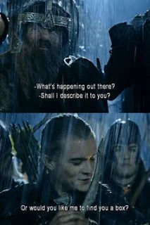 but there also always comes a moment where the characters decide they are ALL IN. Win or lose, they're going to give it all they've got. And because it's a movie, usually the heroes win, and I love to see that moment of rejoicing, when everyone gets together, nearly dead, painted with their own blood and that of those they've defeated (they were just orcs, don't worry), celebrating their victory.
